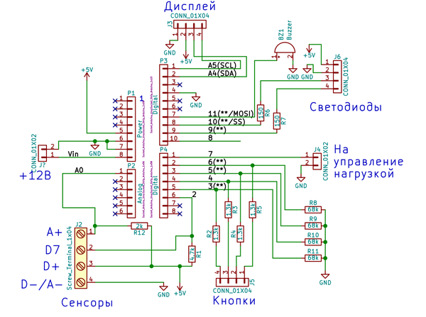 Для кнопочек и светодиодов сделал платку по такой схеме:
