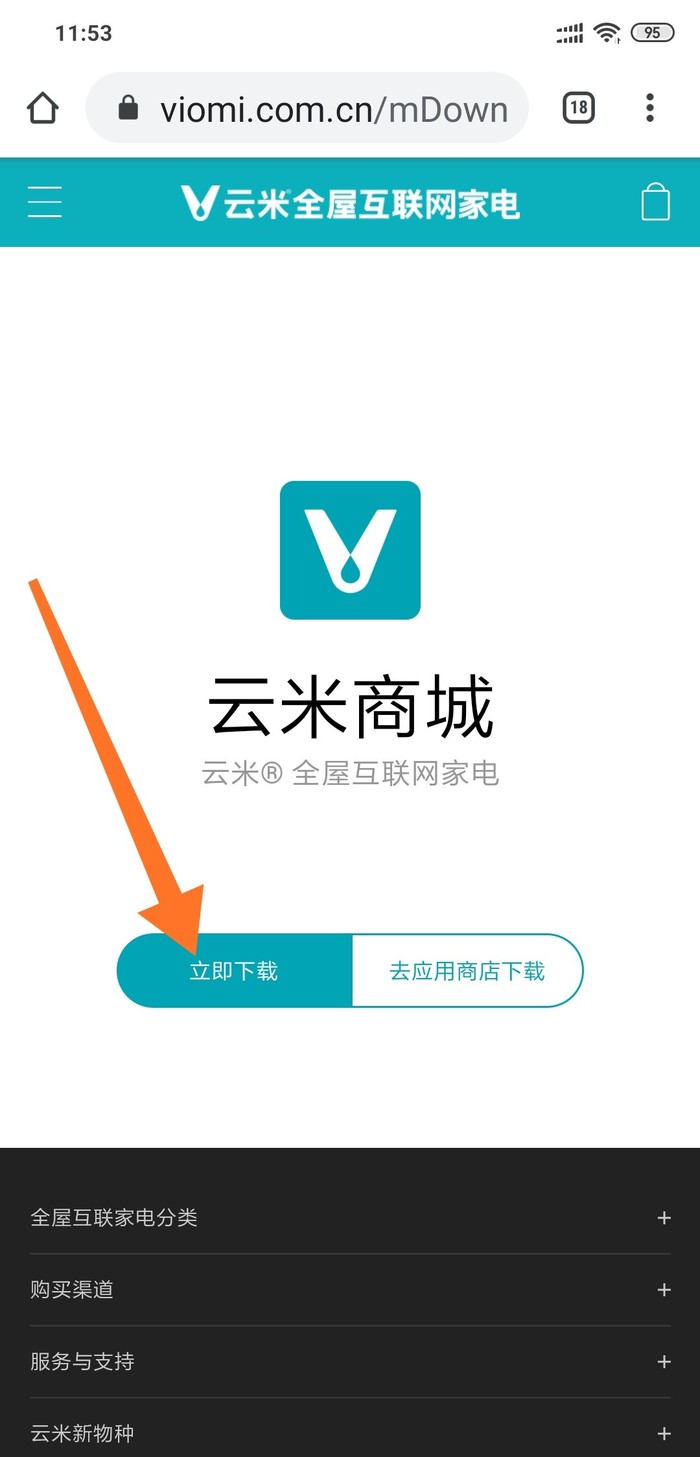 Покрутила чайник - на нем qr-код. Сканирование перебрасывает на какой-то китайский сайт. Гугл переводчик автоматически не перевёл страницу. Ссылка download говорит о том, что сейчас нужно будет что-то качать. Методом тыка можно выяснить, что под квадратом находятся кнопки загрузки. левая бирюзовая качает приложение для управления чудо-чайником. Правая качает какой-то китайский магазин. При загрузке приложения необходимо обратить внимание именно на логотип. Он должен совпадать с лого с сайта