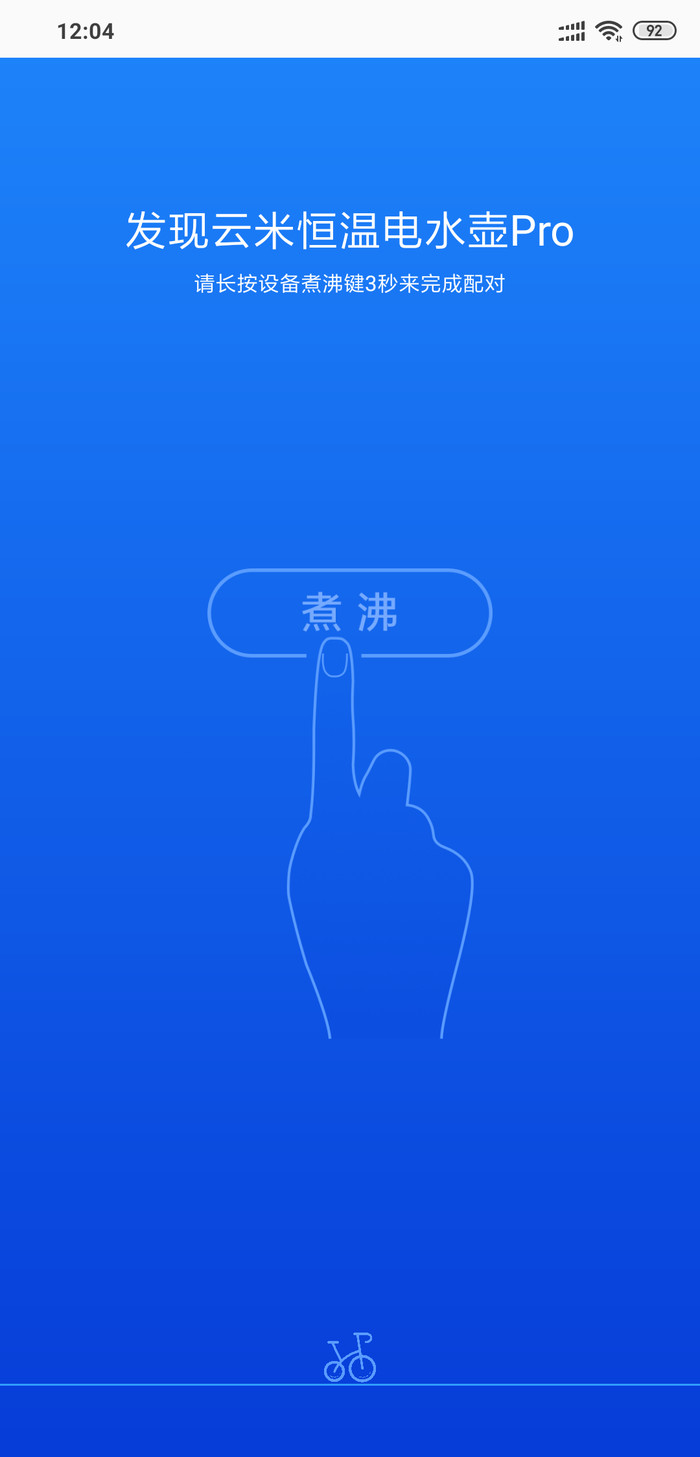 При нажатии на чайник, приложение попросит нажать кнопку на чайнике ( можно догадаться какую по иероглифам). Чайник подключится к приложению.