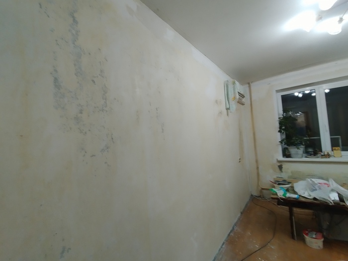 Следующий рабочий вечер. На фото выше видно серые пятна, это места где отвалилась шпаклёвка и просвечивается цементная плита. Сегодня буду шпаклевать.