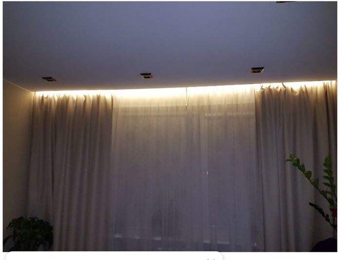- Хотите в карниз встроенное вечернее освещение? Спросил замерщик и показал на телефоне фотографии. Наподобие такой, что я приложил ниже.