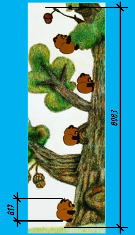 - Пятачок находился на земле от ствола дерева на 2120 мм, то есть он был дальше от дуба чем Винни на 600мм.