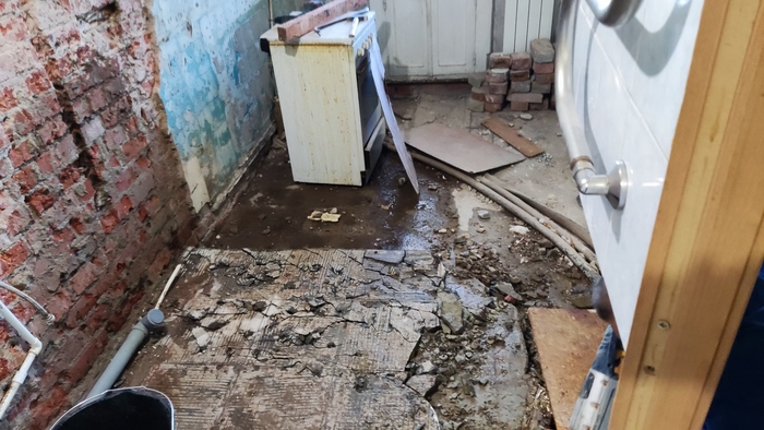 Надеваю резиновые сапоги и продолжаю ломать пол, чтобы найти источник живительной влаги. Всё равно это придётся делать, только отнимая время у сантехника.