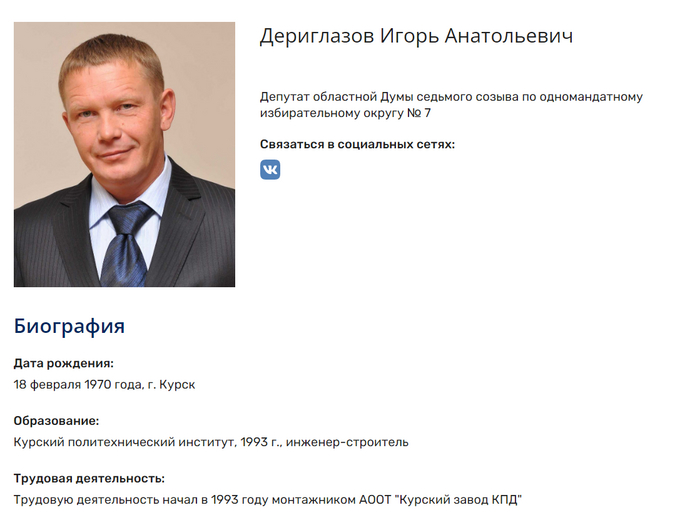 «Курский завод КПД им. А.Ф. Дериглазова» практически монополист по строительству и продаже квартир в г. Курске. Был построен в далёкие советские годы, а в святые 90-е преобразован в АО с последующей концентрацией акций в одних руках. Собственно, имени Дериглазова он потому, что владельцем стал Дериглазов Анатолий Фёдорович.