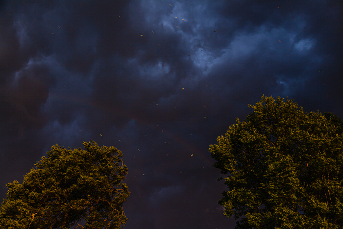Получилось заснять редкий кадр, как сохатый убегает от стихии, когда вокруг валятся деревья.