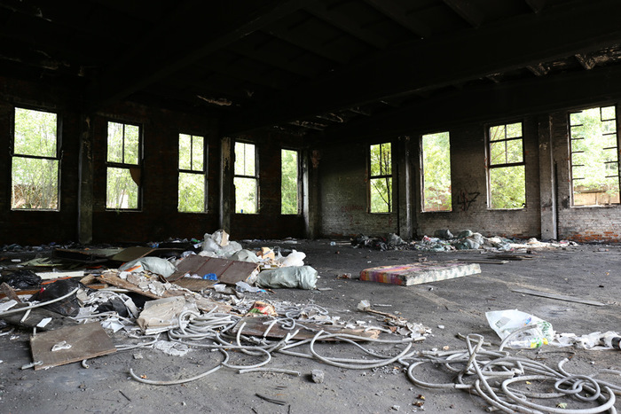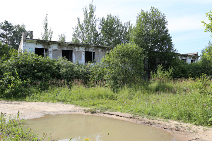 На оставленной территории находятся жилой корпус, башня, склады, гаражи, котельная и бункер.