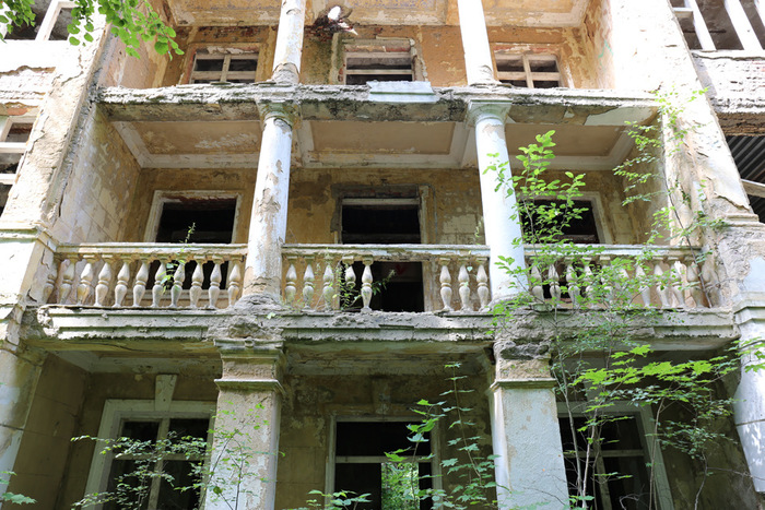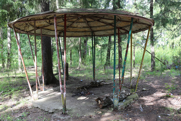 Популярный в советское время пансионат с озером заброшен в 1994-1995 гг. Сюда приезжали лечиться со всего союза. Бывшая здравница с теннисными кортами, банями, танцплощадкой, и даже кинотеатром.
