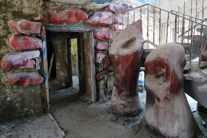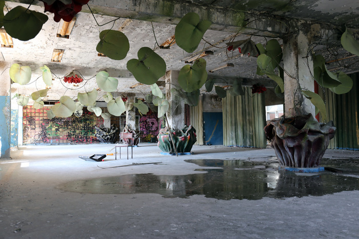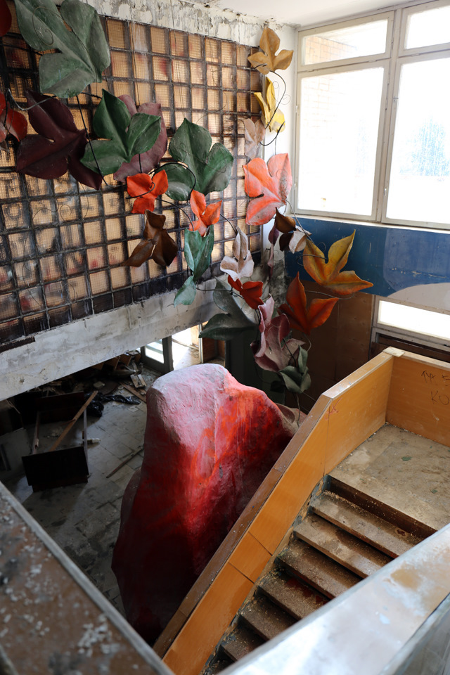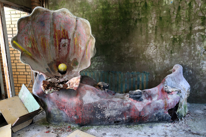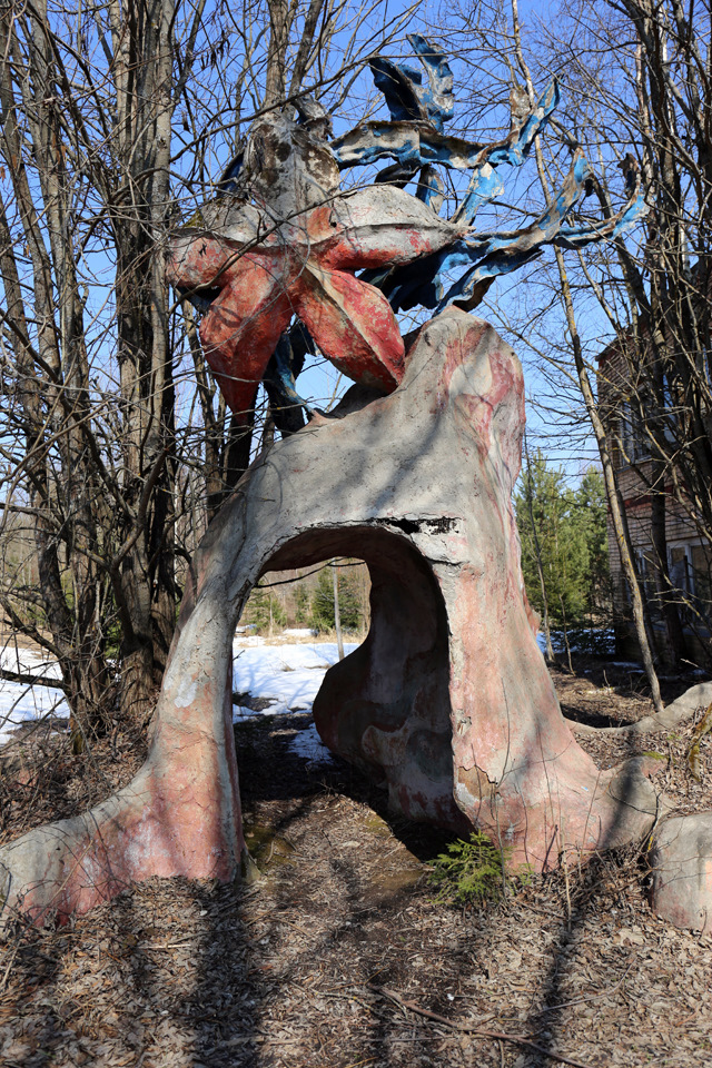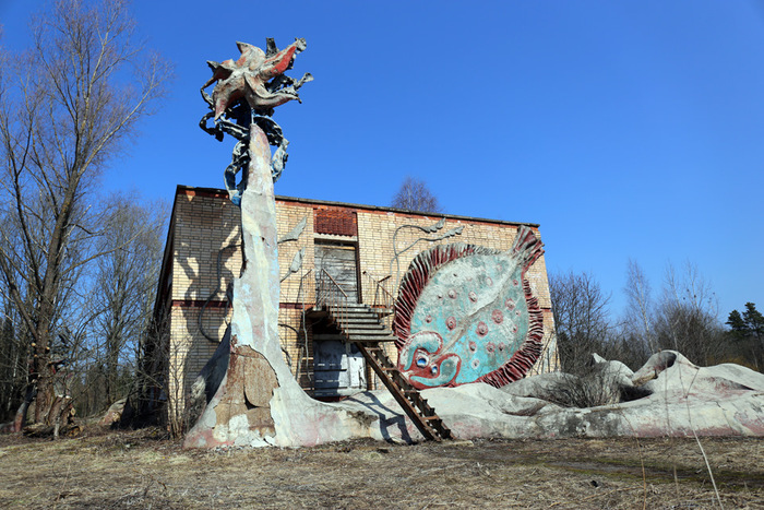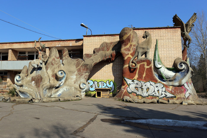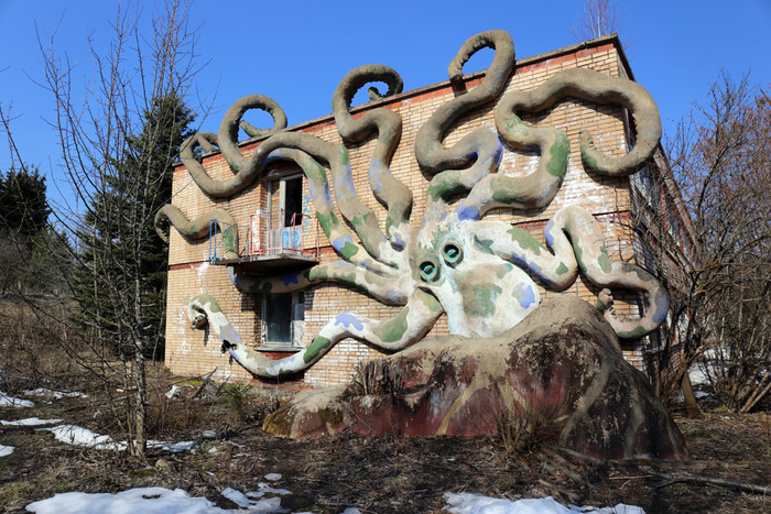 Постараюсь быть кратким. Данная локация довольно известная, можно сказать, даже заезженная, но однозначно заслуживающая внимания. Условно заброшенный пионерский лагерь «Сказка» находится в 50 км от Москвы, в Дмитровском районе Московской области, недалеко от деревни Горки. Построенный в советское время для детей сотрудников издательства «Детская книга», лагерь был отличным, даже шикарным местом отдыха тех времен. На территории располагается собственный горнолыжный склон, бомбоубежище, несколько построек для персонала, детский сад, четыре спальных корпуса, основное здание с кухней, столовой, библиотекой и кинозалом. Со слов нынешней сотрудницы лагеря (ей же заплатили за вход по 300 руб. с носа), территорию использовали для съемок одного из эпизодов программы «Битва экстрасенсов» и множества фильмов, в том числе с участием Ефремова, который, опять же с ее слов, пил как черт. Также это место популярно у блогеров, сталкеров и прочих любителей нескучных выходных, типа нас с сыном. Маленькая ремарка, если решите поехать и захотите обследовать бункер, обязательно прихватите нормальные мощные фонари, эта хрень в телефоне, в полной темноте незнакомого места, попросту не эффективна. Способов попасть на территорию два: первый — приехав позвонить по указанному над основными воротами телефону, получить информацию, проехать дальше, оплатить, оставить машину у здания охраны и пойти исследовать; второй — через забор.