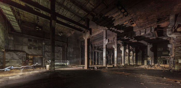 Перспектива нарваться на "местных жителей" нас не радовала и мы решили ограничится поиском подземных сооружений, где, в нашем понимании, был минимальный шанс встретить кого-нибудь. Собственно таким образом мы и оказались в испытательной камере, имеющей несколько уровней и с довольно впечатляющим, по своим размерам, главным залом.