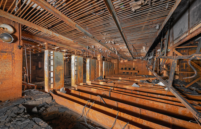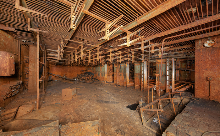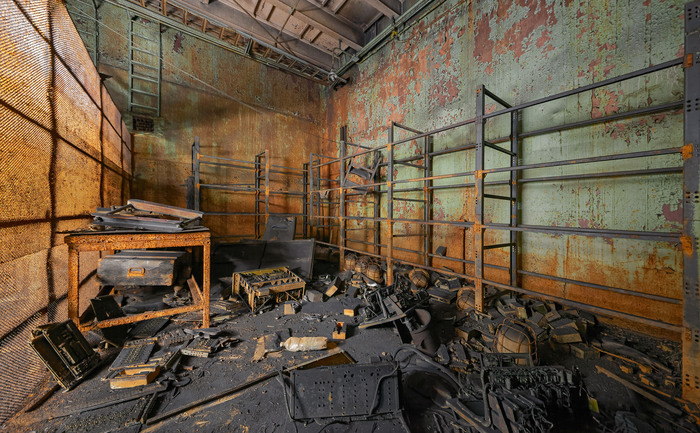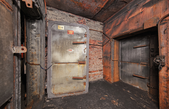 Ржавчиной покрыто практически все, но при этом внизу достаточно сухо. Возможно когда-то все это было затоплено, как не редко практикуется на военных и секретных объектах.