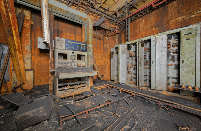 Кабели все уже срезаны, но по одному виду кабельных вводов и стоек, можно предположить, что электричества этот объект потреблял не мало.