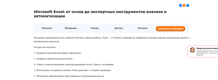 Если вы только начинаете работать с Excel и таблицами, выбирайте курс с такими характеристиками: