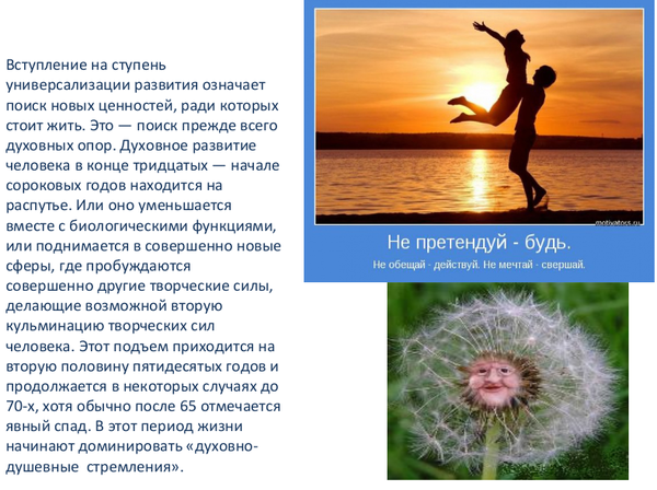 В следующей презентации идут чудесные истории о духовном и душевном развитии, о том что "человек по преимуществу существо искусственное, само выстроенное", о том что 30 лет - это время свершений, что в 30 люди реализуют многое из того, что намечали в юности, например стать магом