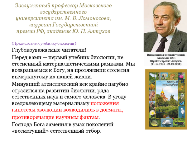 В которой зачем то есть слайд про Богоугодный учебник биологии за 10-11 классы