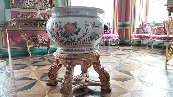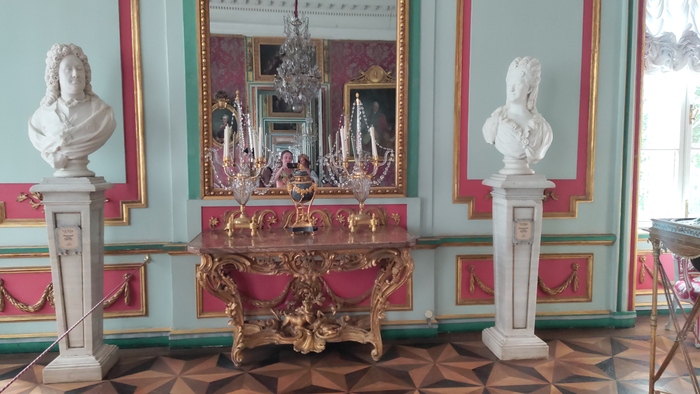 Большой дворец отражается в воде Большого пруда. Здание изначально строили не для проживания, а для проведения торжественных мероприятий летом. Его интерьеры украшают подлинники живописных полотен и скульптур.