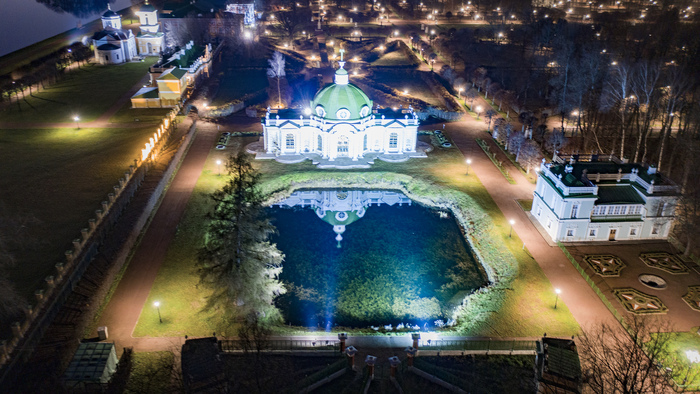 Возрождение павильона "Грот" стало одним из наиболее сложных проектов реставрации - для его отделки были использованы 24 вида раковин моллюсков. Утраченные элементы декора привезли из Средиземноморья, в основном из Греции, Франции, Италии и Турции. В общей сложности понадобилось около 90 тыс. ракушек.