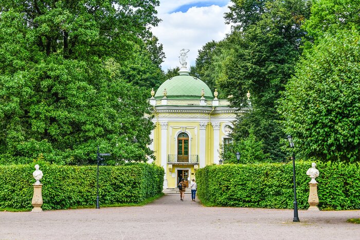 Павильон был построен в 1767 году и в то время был самым технологичным строением усадьбы. На второй этаж доступ имели только хозяева и их гости. Лестницы не было, попасть наверх можно было на своеобразном лифте - в кресле на подъемном деревянном механизме с кожаными лентами.