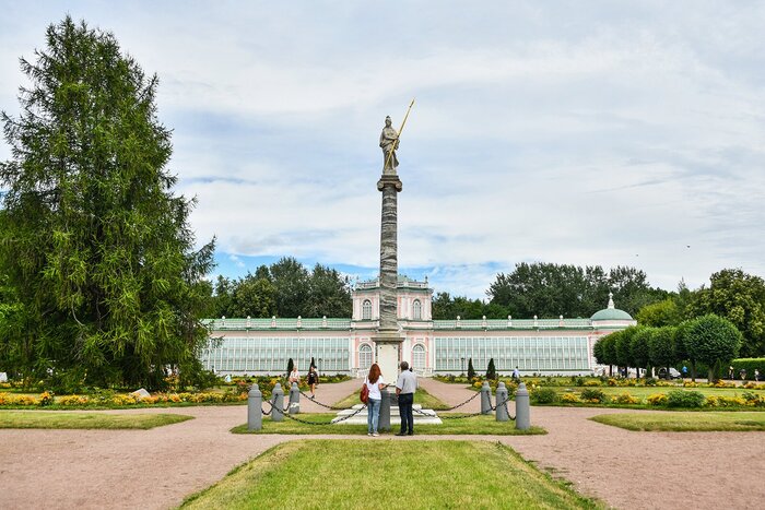 В 1775-м, в память об очередном приезде Екатерины II, рядом с Большой каменной оранжереей установили колонну, изготовленную из подаренного императрицей мрамора. Колонну увенчала статуя древнеримской богини мудрости Минервы, с которой часто сравнивали Екатерину II.