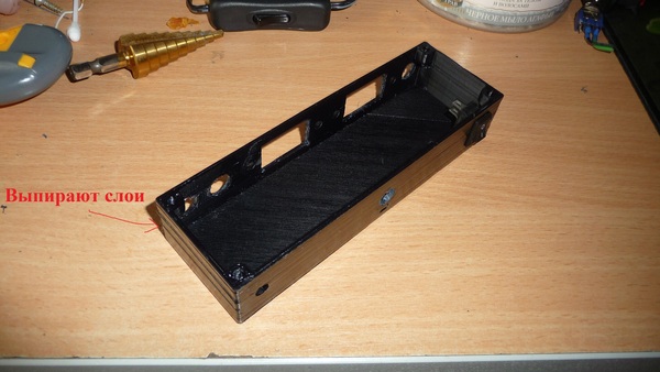 Корпус смоделировал прошлым вечером и поставил печататься на 3д принтере. Получилось хоть и не идеально (принтер требует ещё дороботок), но главное он появился "из ничего" со нужными размерами и отверстиями. Позднее обработал дихлорэтаном (клей, который растворяет пластик).