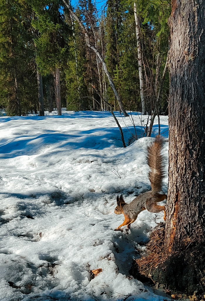 Белки тоже решили, что ещё не время и остались в зимних шкурках