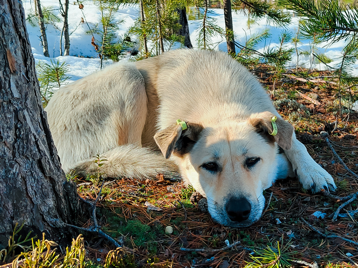 Вдоволь нагулявшись по окрестностям и насытившись местным воздухом мы поехали обратно в сторону города. И по традиции - фотография собачки с места событий)))