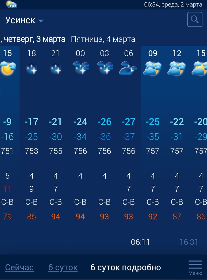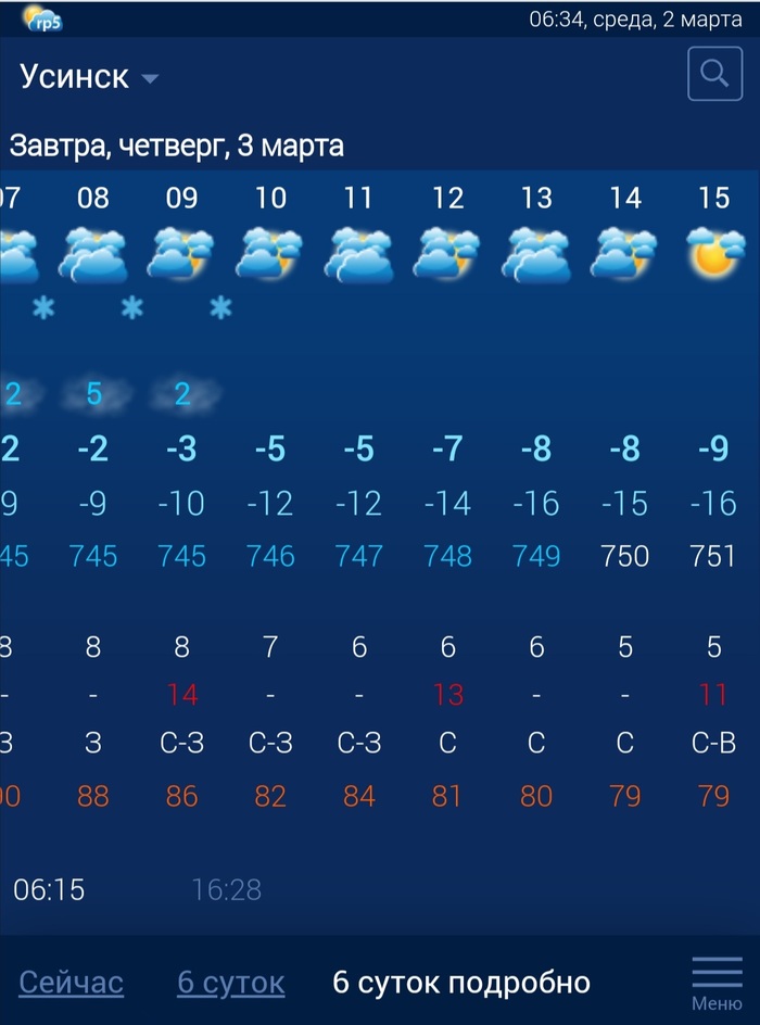 Давайте просто пообщаемся о погоде под этим постом. У меня в Усинске сейчас около -4, но на деле ощущается градусов на 7-8 побольше. Все дело в ярчайшем мартовском солнце, да и шел я по улице в полдень почти ровно, в 12:40. Пришлось снять куртку и идти в одном свитере, в котором комфортно где то в +10-+15. И я даже не замерз за 20 минут пути, было вполне комфортно.