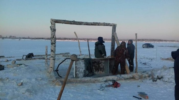 По словам местных жителей, эта «дорога жизни» по льду длиной 4,5 километра прокладывается снегоходами каждый год до появления официальной переправы. В этом году ситуацию осложнил паром, который ходил до самых морозов, не давая льду закрепиться. Официальная переправа находится в стороне, но из-за недостаточно сильных морозов до сих пор не принята в эксплуатацию.