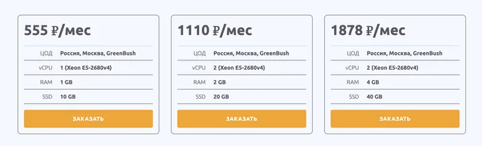Тарифы на VDS-серверы в Hosting-Russia включают три основных пакета: