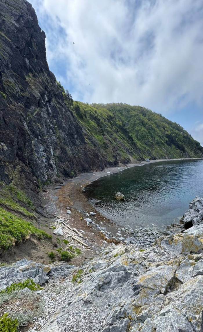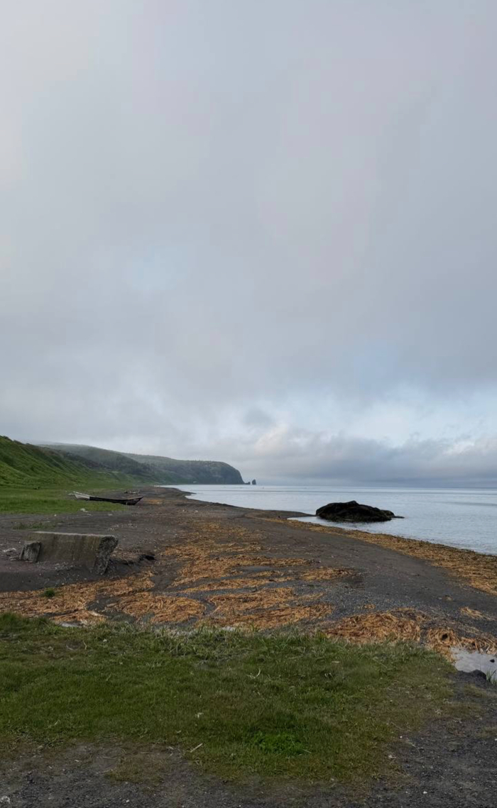 Так мы и отправились по заливу охотского моря к маяку) по пути Петр делал остановки и рассказывал, как тут японцы жили, как все крушили, когда сваливали, как сейчас сюда студенты с палатками приезжают, и весь берег забит.