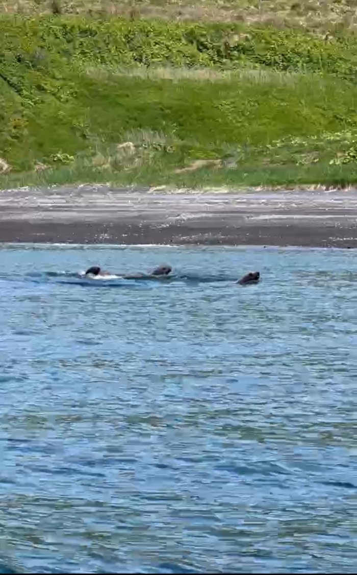 Сивучи выныривают один за одним и идут вдоль берега!!! Я кричу всем, что вон они, Петр берет право руля, и мы догоняем их! 4 потрясающих головы, выныривают с периодичностью, давая нам возможность сделать фото и видео, а также насладится этим зрелищем) восторг детский просто невозможный ❤️❤️❤️❤️