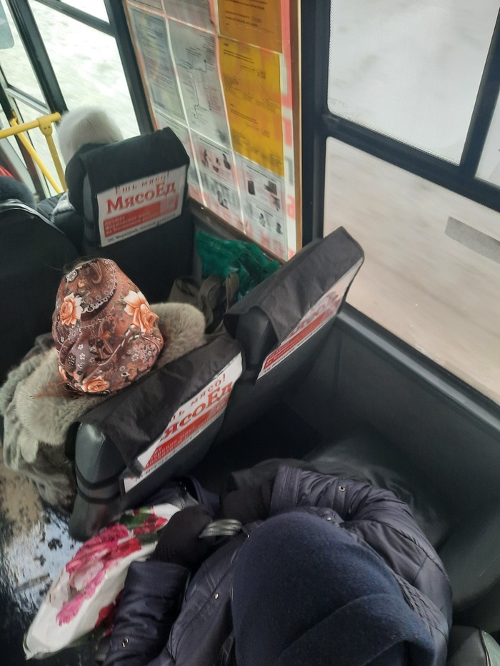 Встаёт один из сидящих парней, маманя тут же усаживат "корзиночку" и он радостно начинает таскать что то из пакета, воняя на весь автобус фастфудом.