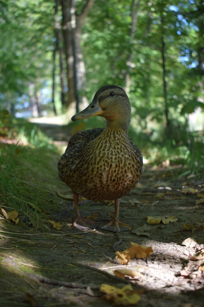 Решив, что места хватит всем, я причалил к берегу и начал вытаскивать каяк на песок. Уточка, видимо, не разделила моего мнения по данному вопросу, и увела утят в воду, отплыв на небольшое расстояние.