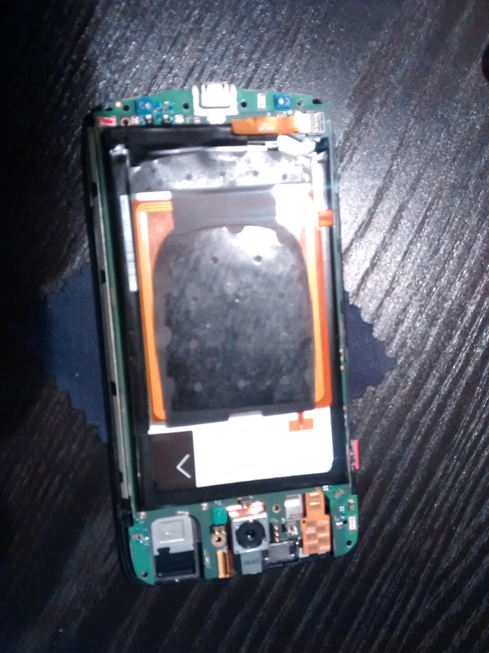 Дома телефон был сразу же разобран. Индикаторы влаги красные и есть окислы на плате (на третьей картинке внизу посередине). Два дня лежал на чуть тёплой батарее отопления. После сборки отказался заряжаться. Пиктограмма заряда на дисплее есть, но выглядит будто батарея не подключена, заряд не идёт. Сама батарея подключена и при попытке включить телефон появляется пиктограмма крайне низкого заряда.