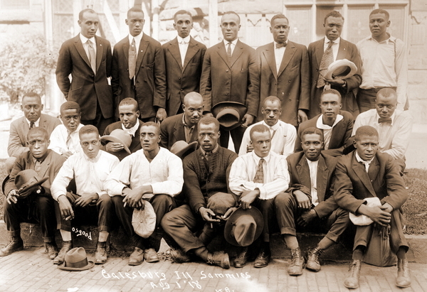 Группа чернокожих новобранцев. Снимок сделан в городе Гейлсберг, штат Иллинойс.