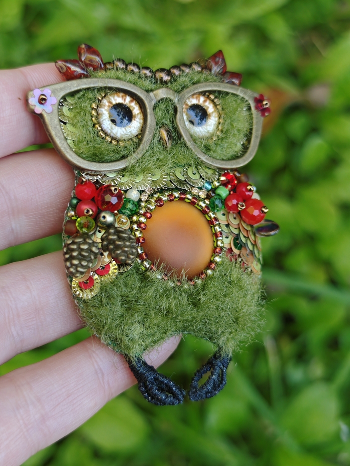 Вышила вот такую ягодно-лесную сову) собирает урожай, готовится к зиме🍁🍂🍁