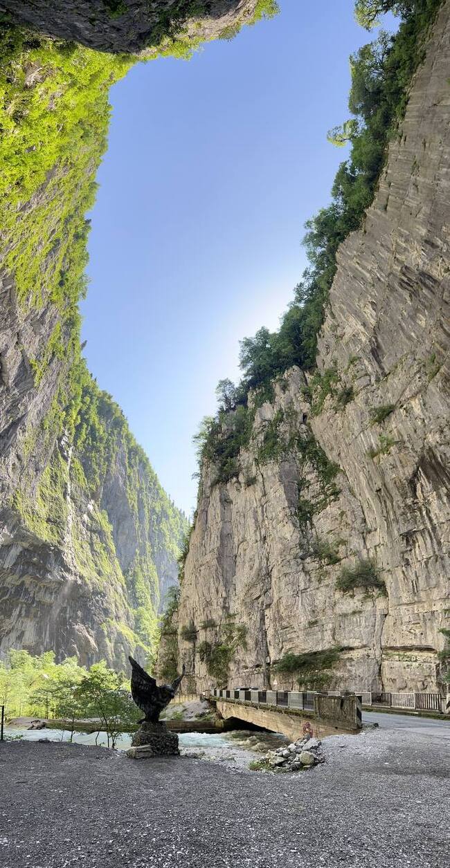 Спустившись вниз мы направились непосредственно к самому ущелью. Изначально в нашей программе было посещение Цейского ледника, но в канатную дорогу поднимающему к нему, ударила молния и дорога была закрыта уже несколько дней. Можно было бы подняться пешком, но времени нам на это никто не дал, что сильно испортило впечатление от экскурсии.