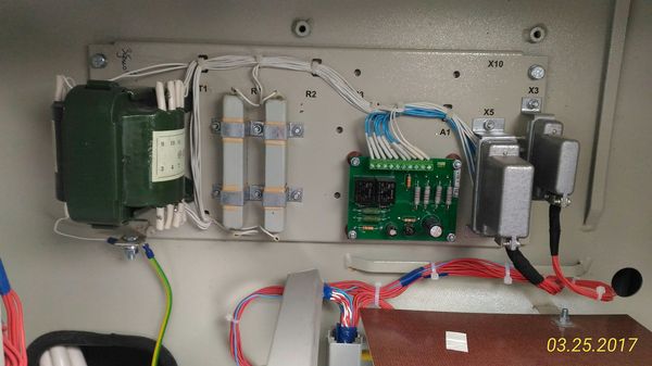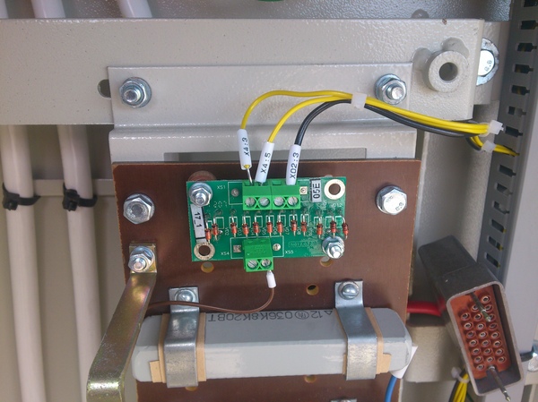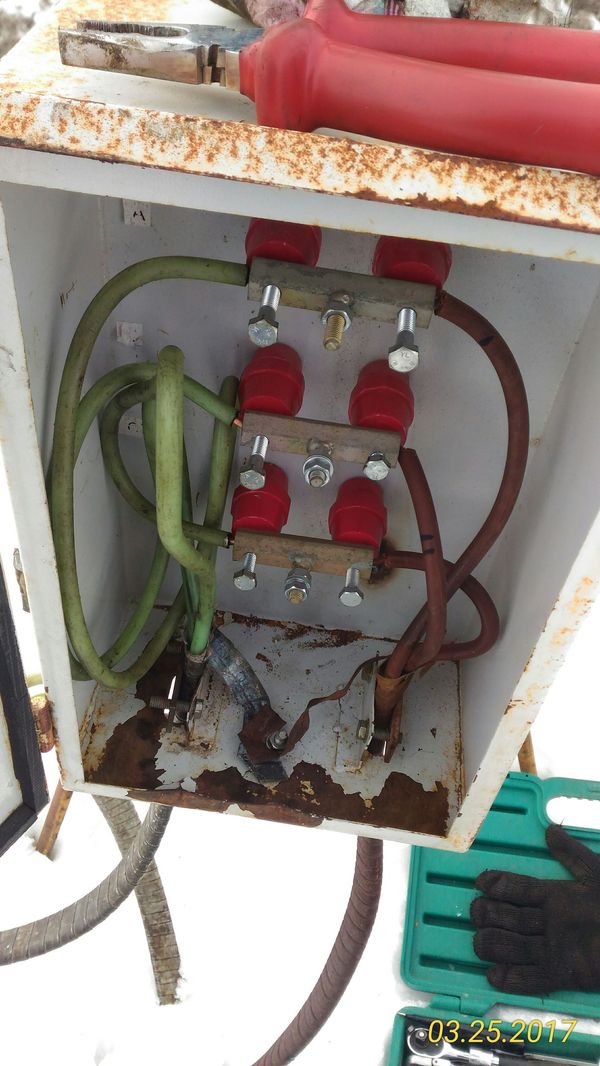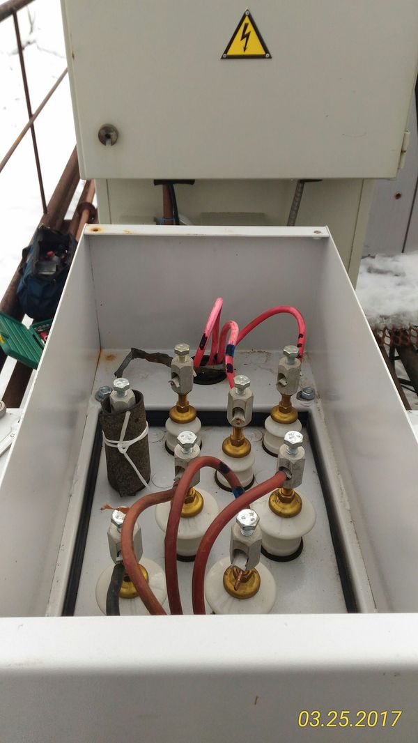 Это станция управления УЭЦН производства ЗАО Электон. В связи с глобальным потеплением занимаемся установкой КРМ (компенсатор реактивной мощности). Так вот, приехал на скважину, открыл дверь СУ. А тут даже лучше чем синяя изолента, прикручено аллюминиевой проволокой!
