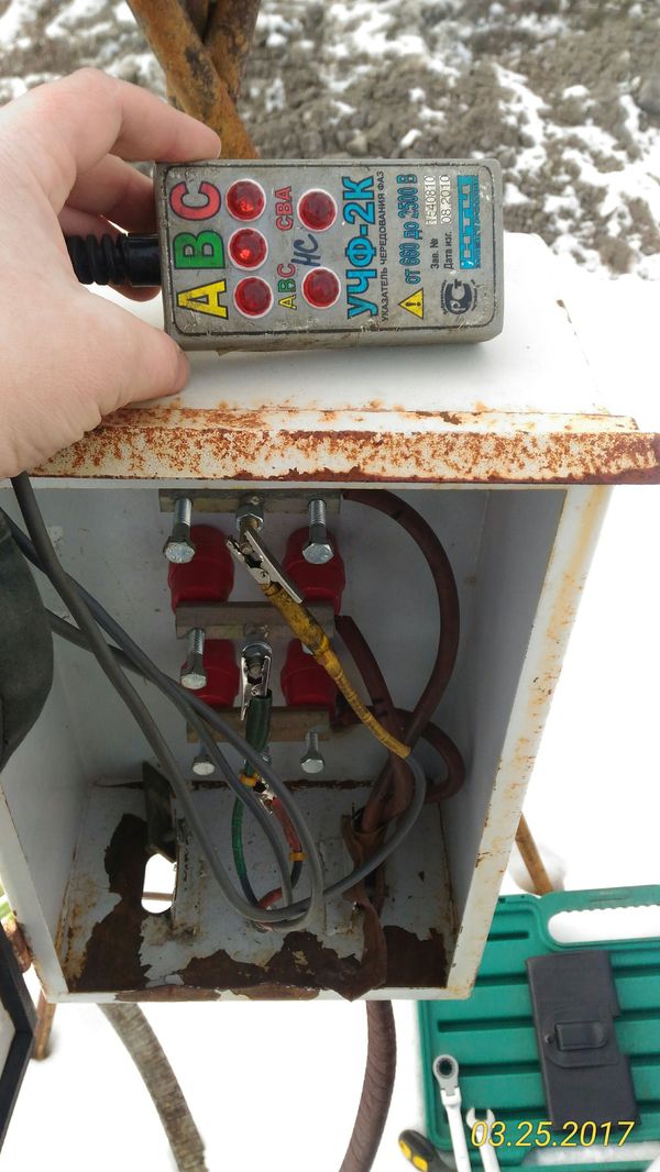 Идем к клеммной коробке, узнаем чередование фаз, подключаем кабель с устья скважины: