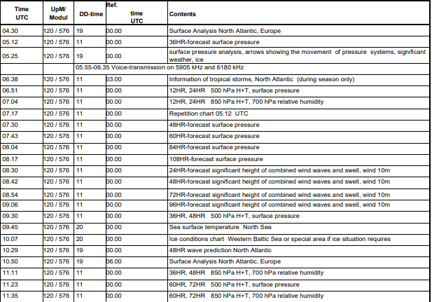 Активным распространением занимается немецкая метеорологическая служба ( Deutsche Wetterdienst https://www.dwd.de/DE/Home/home_node.html ). С помощью радиофакса передают информацию о поверхностном давлении, влажности, циклонах/антициклонах и т.п.
