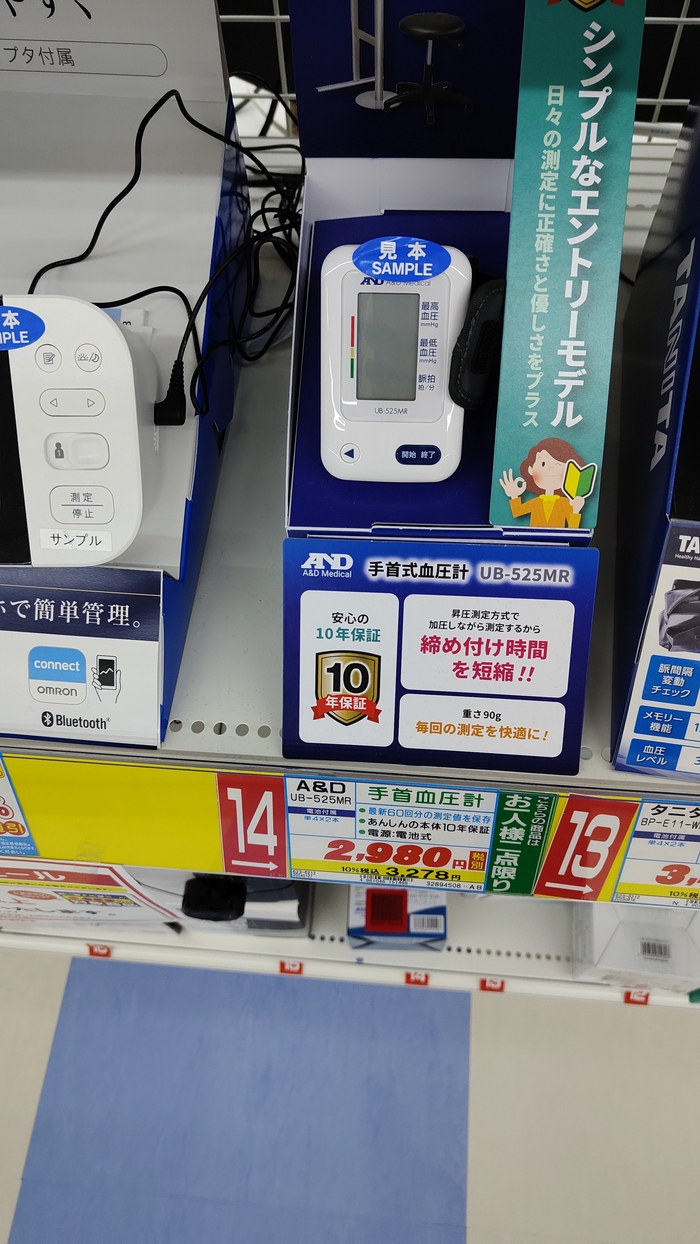 Тонометр на запястье. AND 525MR (1700р) у нас похожие модели 2500-2800р, BP-EP-11WH(2000р) у нас модельку не нашёл думаю в том-же диапазоне.