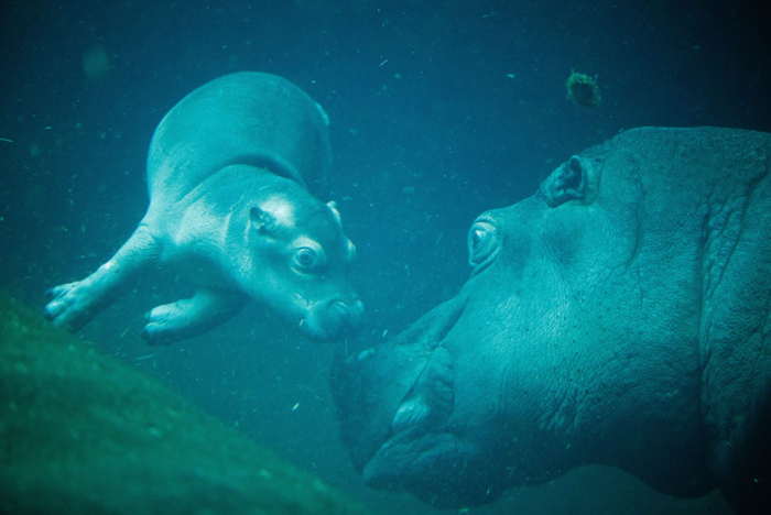 В Берлине бегемотик приплыл к маме.