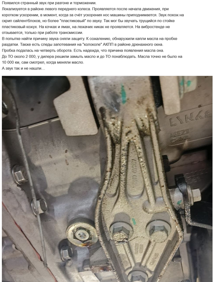 а вот чем заканчивается наличие своих кровных китайских узлов, течь коробки на мизерном пробеге, и стук. на фото видно кто производитель.