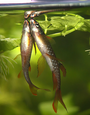 Отложить икру в воду, как все нормальные рыбы? Ага, щщас. В водах притоков Амазонки такое количество желающих закусить деликатесом, что шансы на то, что останется хоть одна икринка, стремятся к нулю. А вот над водой никто рыбью икру искать не додумается. Так что, когда приходит время, самец отыскивает склонившуюся над водой ветку дерева и подзывает самку.