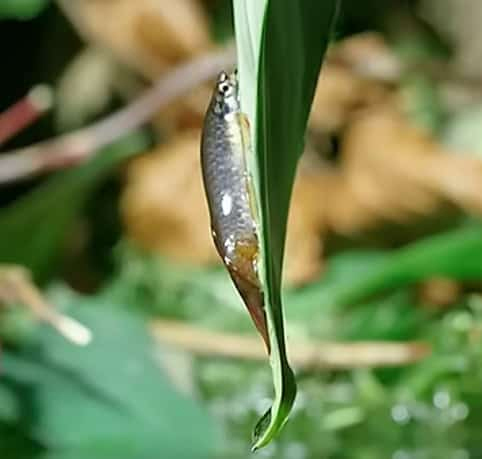 Это копелла Арнольда, или прыгающая харацина, и такие чудеса эквилибристики эти рыбки совершают во имя размножения. Обитает сие чудо природы в притоках Амазонки, где большую часть жизни мирно плавает, ни с кем не конфликтует и знай себе жуёт планктон. Но когда приходит время нереста, то и самцы и самки временно переквалифицируются в акробатов.