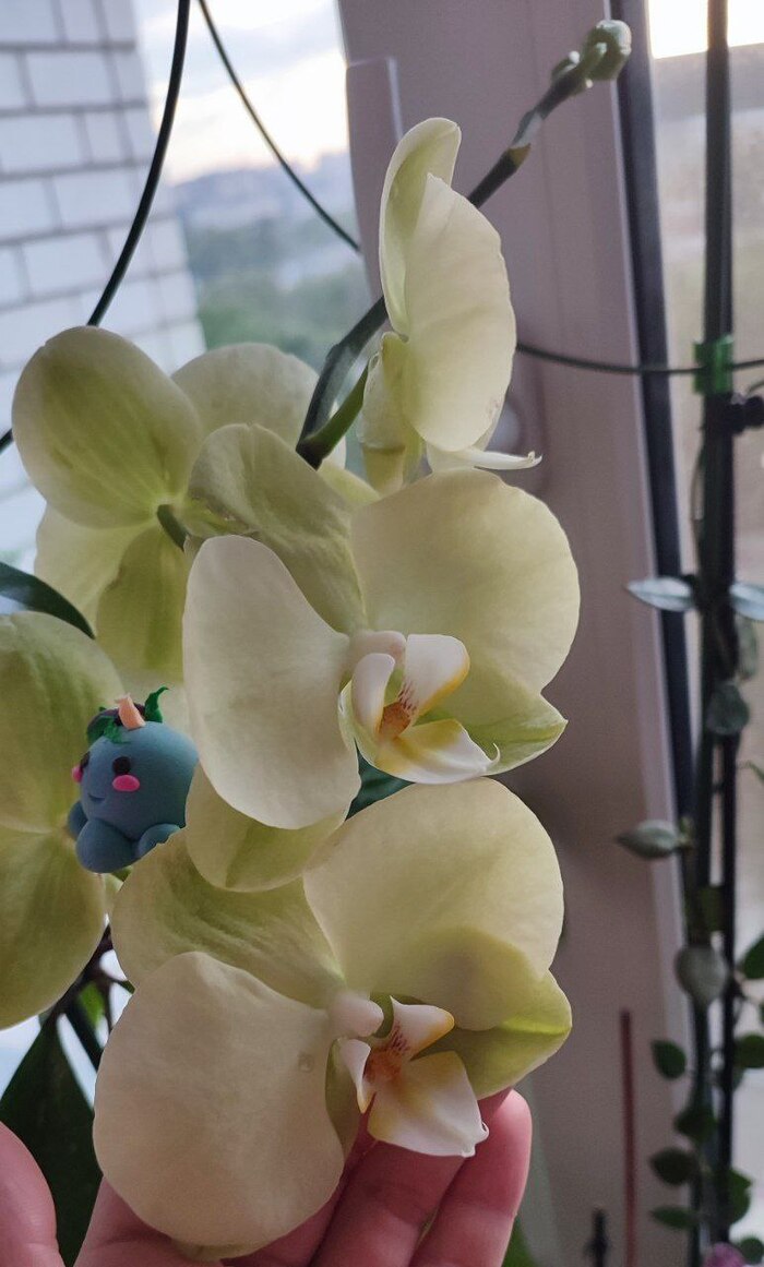 Цветок куплен 2 месяца назад, были просто бутоны на стрелке. Окно на запад, солнца мало, но ему, похоже, нравится.