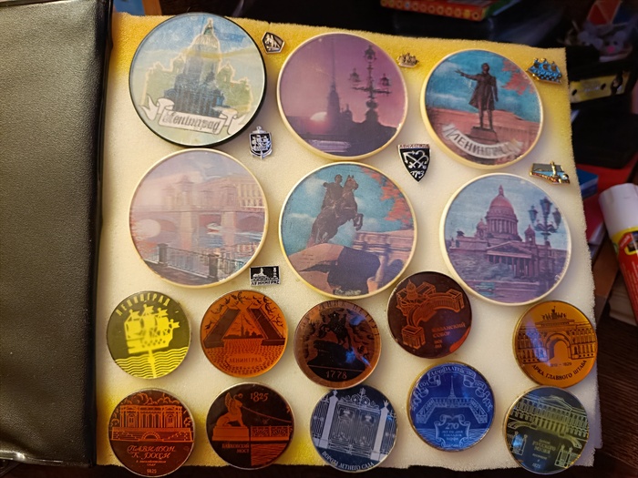 Значки из ситалла прелестны в своих переливах. Наборы не полные, есть повреждённые значки.