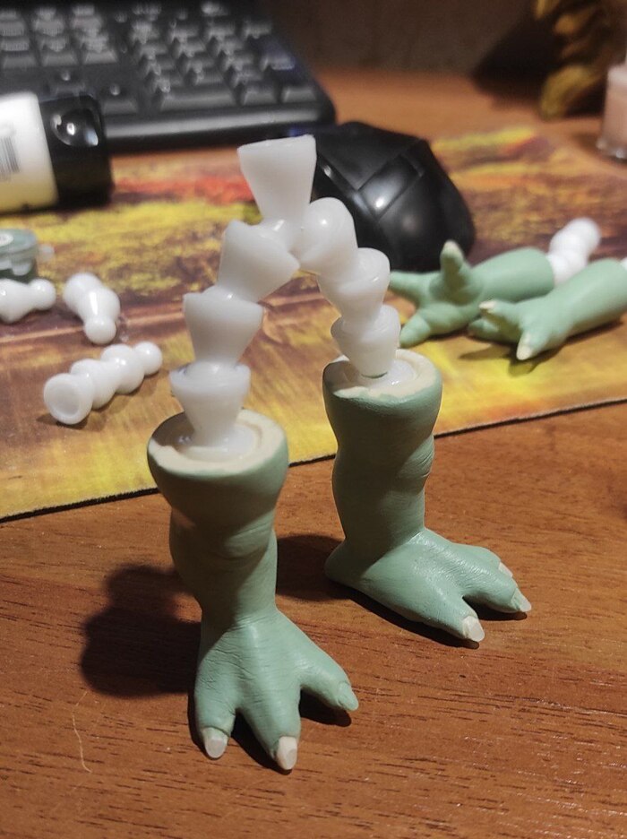 я отлила конечности и голову в пластике, высверлила полости для присоединения каркаса и, намешав ещё немного жидкого пластика, скрепила фрагменты с каркасом этим самым пластиком. После застывания это гарантирует наиболее прочное соединение.