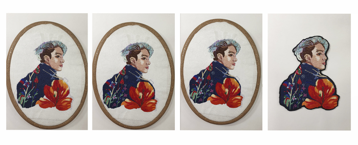 Ещё одна мозаичная вышивка гладью популярного корейского красавца из BTS.