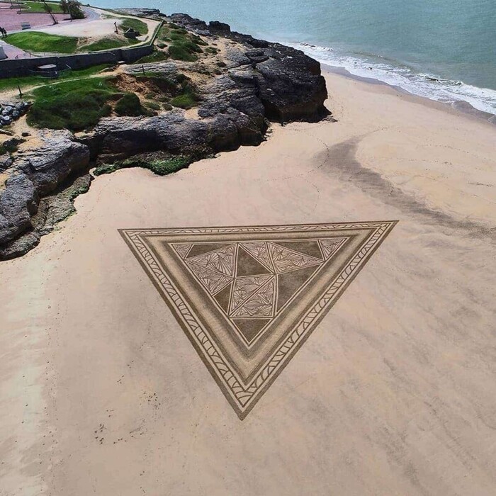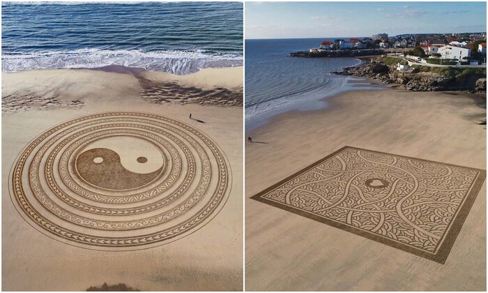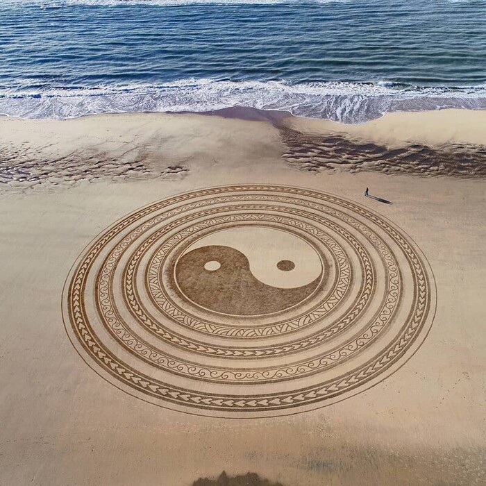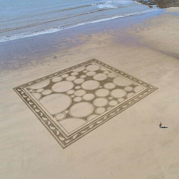 Для настоящего художника в качестве холста может выступить сама природа... Французский художник под ником JBen, например, рисует невероятные узоры на берегу океана. С первого взгляда кажется, что это какой-то фотошоп, потому что рисунки выглядят слишком ровно и идеально. Но это всё - реальные работы. Иногда художник изображает какие-то символы, а иногда - предметы и персонажей. Оцените его работы, которые поражают своими масштабами!