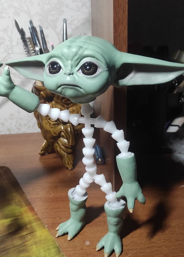 Что касается каркаса, ранее он был проволочный. Не хотелось оставлять Грогу статичным.